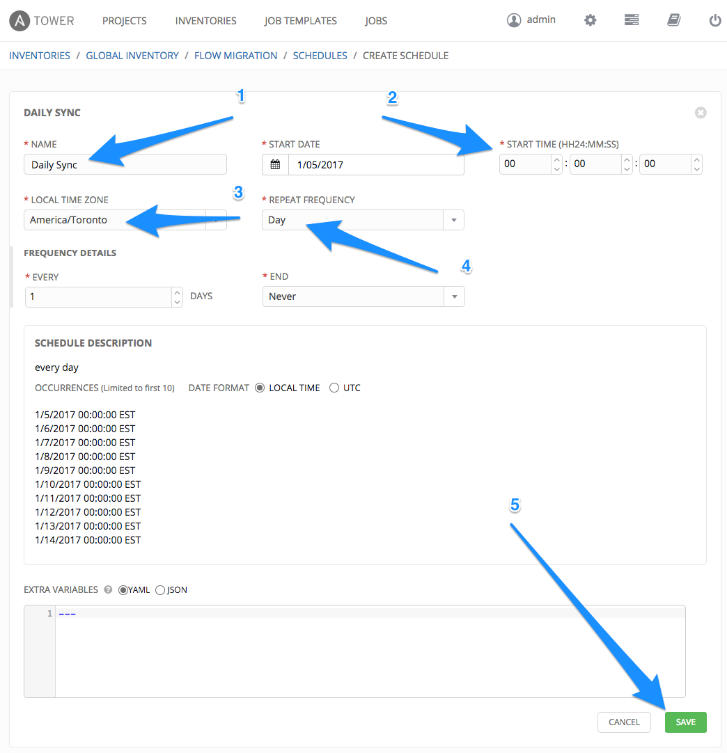 You can specify a schedule for the inventory script to run on automatically. This allows Ansible Tower to automatically sync and update the available hosts.