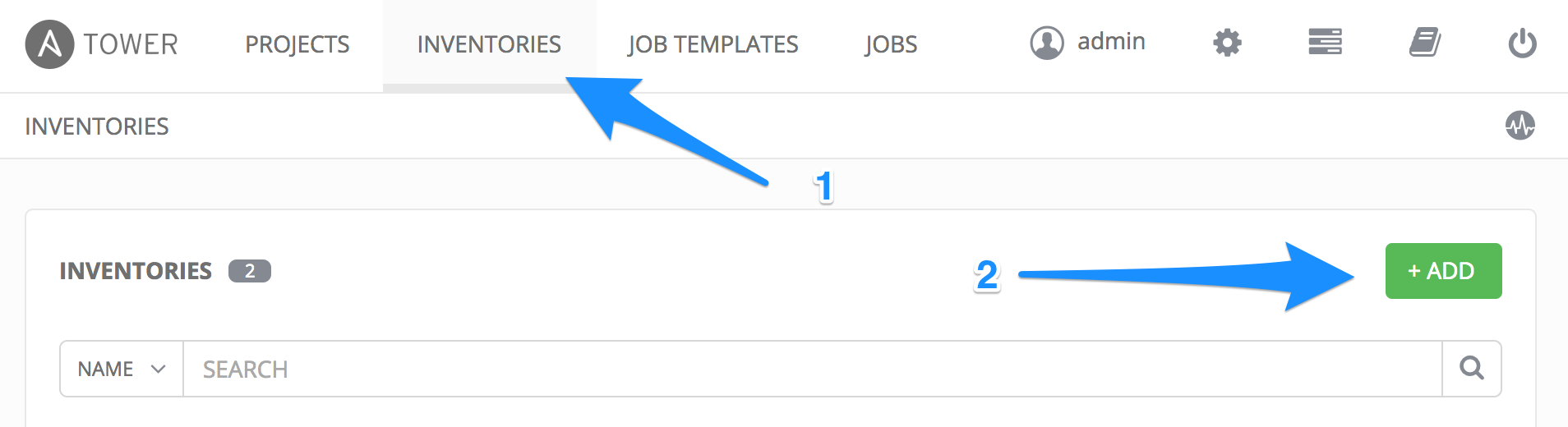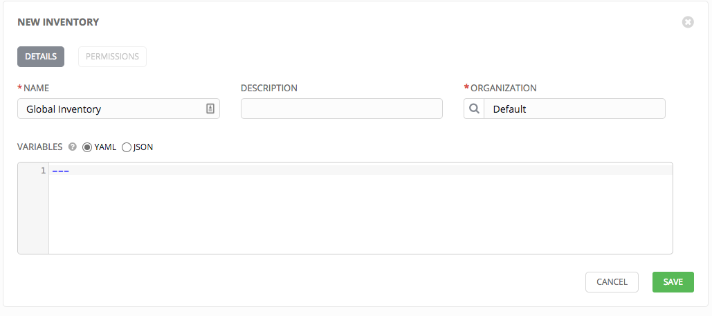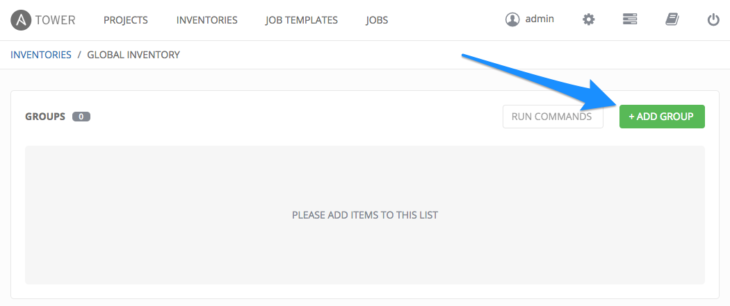 An Inventory is a collection of hosts against which jobs may be launched, the same as an Ansible inventory file. Inventories are divided into groups and these groups contain the actual hosts. Groups may be sourced manually, by entering host names into Tower, from one of Ansible Tower’s supported cloud providers or from a custom inventory script. In this case we will be setting up an inventory and a group to populate hosts from the custom inventory script we have just added. If you already have an inventory setup you can skip this step and continue below by adding a group.